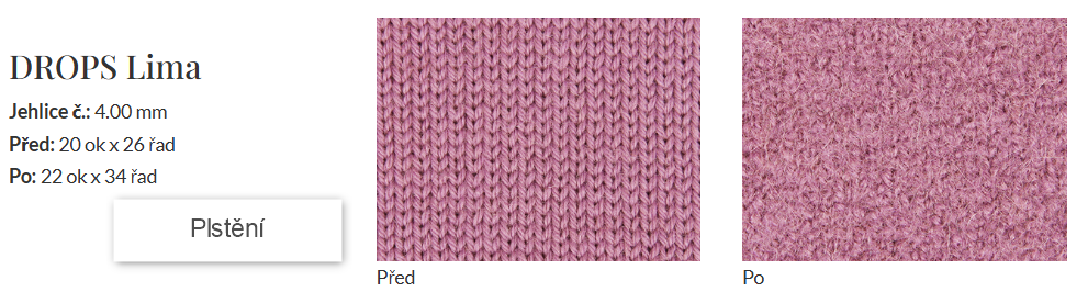 | Zkušební vzorek | 10 x 10 cm = 21 ok x 28 řad |